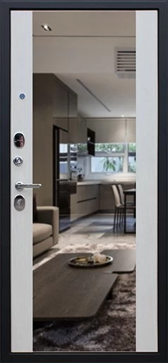Надежная входная Дверь Вектор с зеркалом премиум класса по цене 49 701 руб. Большая толщина стали защитит от проникновения в ваш дом, квартиру или коттедж. Используется очень качественная фурнитура: замки, цилиндры, ручки, защелки. Покрытие и отделка двери изготовлено под внимательным контролем производителя. Дверь имеет долгий срок службы и гарантию.